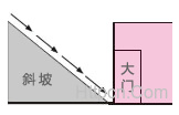 房屋建在斜坡尽头,大门面对斜坡,形势险恶。在风水学来说,斜坡是“水”,虽说是水为财,但倘若滔滔不绝的“流水”沿着斜坡直冲入房屋的大门,势必酿成灾祸。