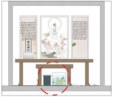 供桌下方应该保持干净,不可堆放杂物,尤其是鱼缸或是电器物品;如果为鱼缸,这会有“正神落水”的现象,会有退神和大漏财之现象。如果因特殊需要,罗盘可放在供桌下方。