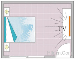 电视直对床