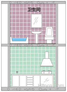 (1)最好将灶移位,同时在卫生间门上挂一串