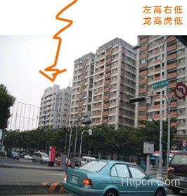 住宅右边房屋比本宅高,就是虎高龙低,犯之易有血光之灾,男人事业难成。