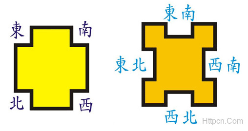 以一间房子之正中心为基准,那一边有缺(空缺),代表那一方可能会有破败。