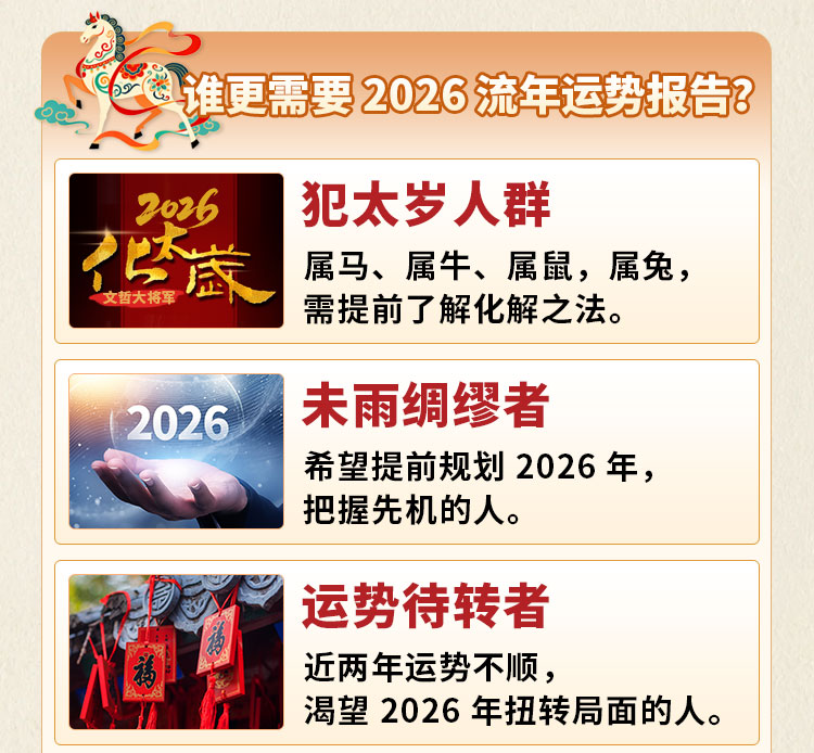 离火之年,吉凶同宫,泰中藏否。然运势之道,不在趋避,而在先机。提前洞察流年走向,方能顺势而为、稳中求进,于火运之年把握先机,以命理为舟,渡流年之变。