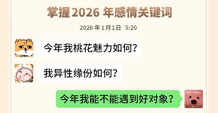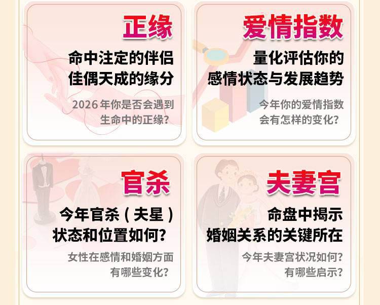 的动态分析,把星象学复杂的理论转化成易懂而专业的解读,精准把握2026年爱情运的核心走势,帮助您在爱情路上更加顺畅。此外,还为个人